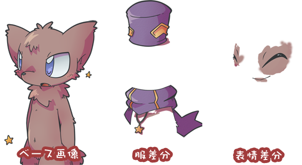 顔だけくり抜き、衣装差分は顔以外を含める感じで。