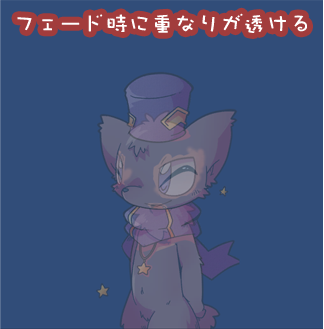 こんな感じで、フェードするときに半裸下レイヤーの画像が透けるように。