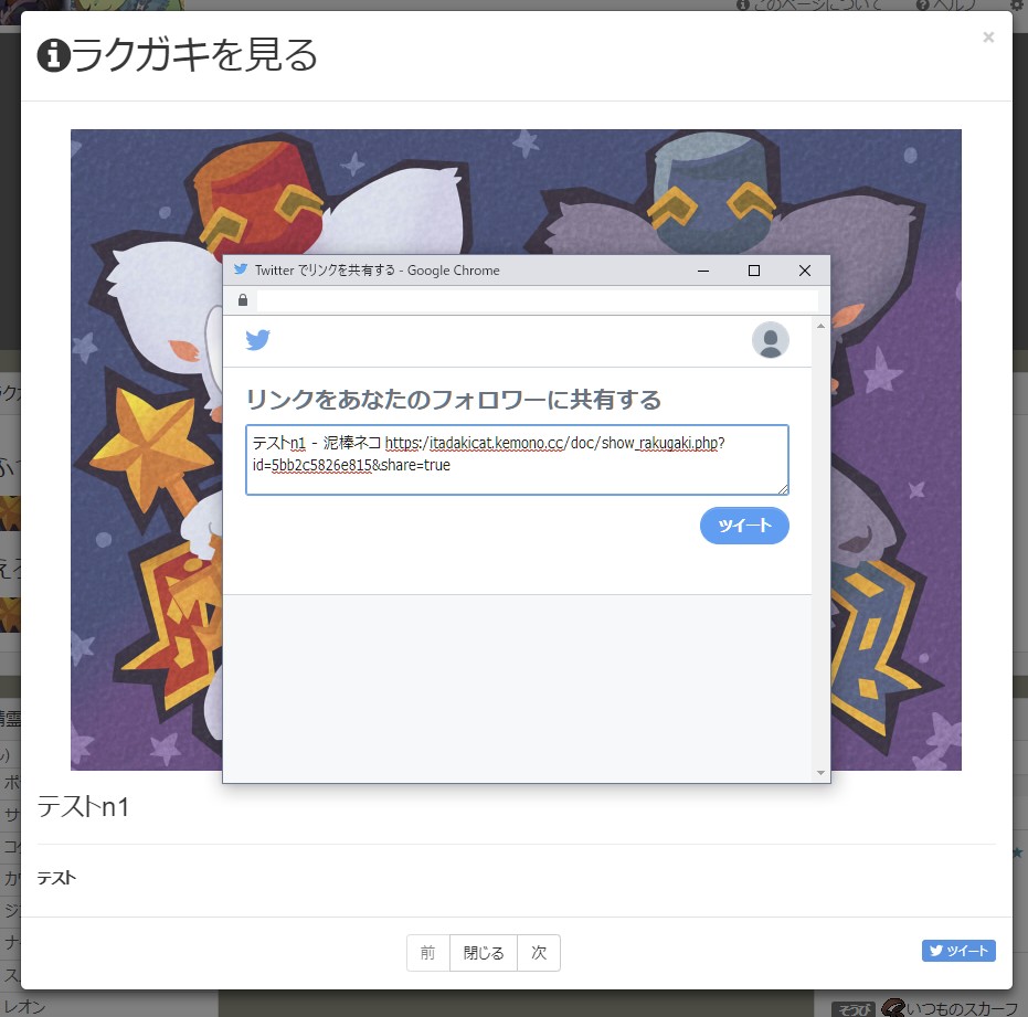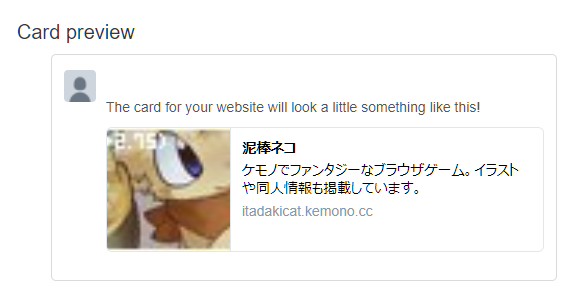 Twitter側でのプレビュー画面。メタタグに情報を仕込む感じ。