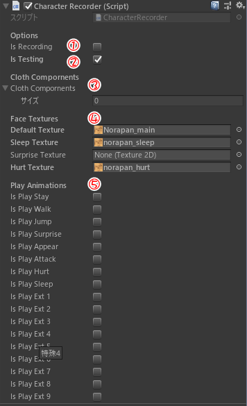 差し替えのタイミングはアニメーションスクリプトから設定できる。
