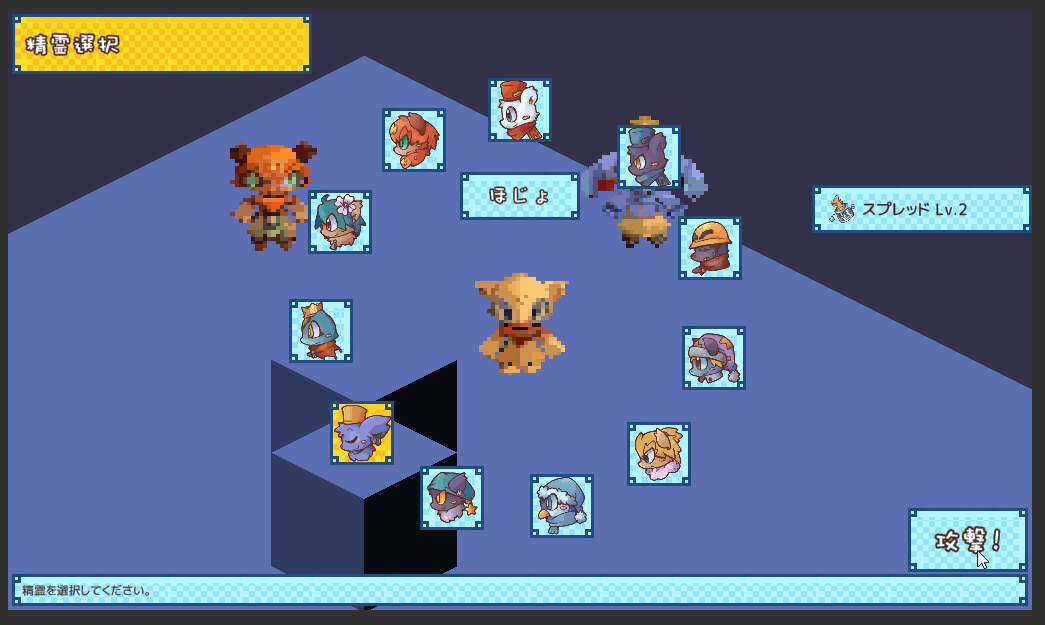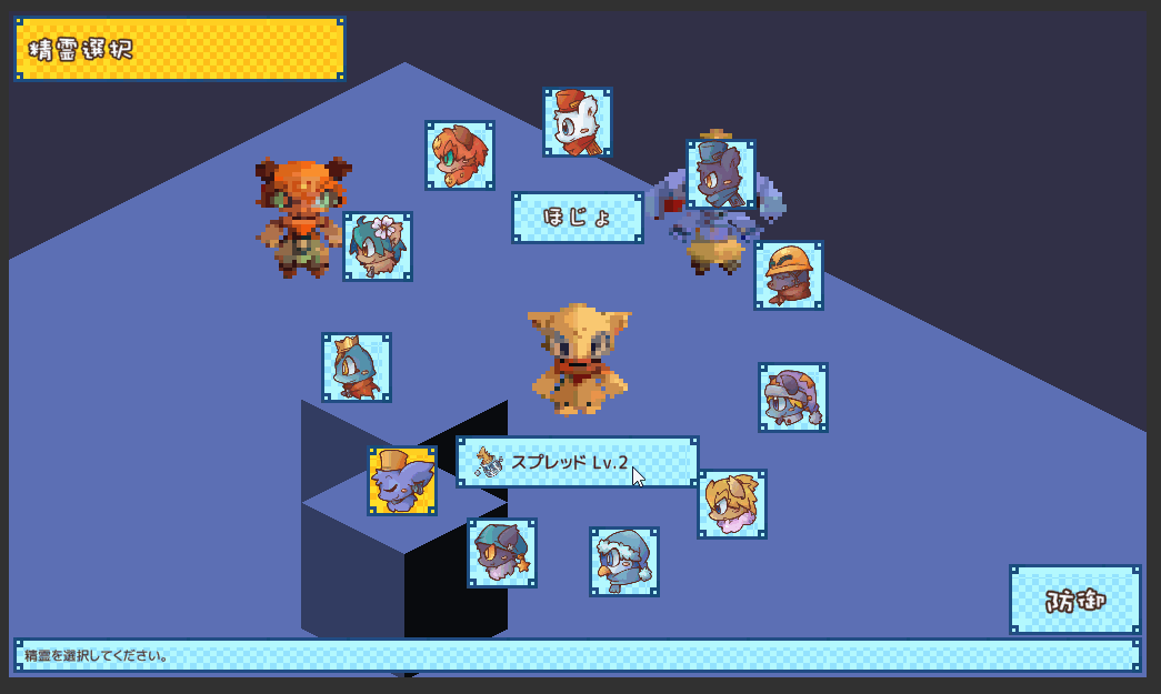 ・ターゲット選択画面で、クリックされたマップ上のキャラに紐づくバトル用のキャラを追加して、精霊選択画面へ戻す