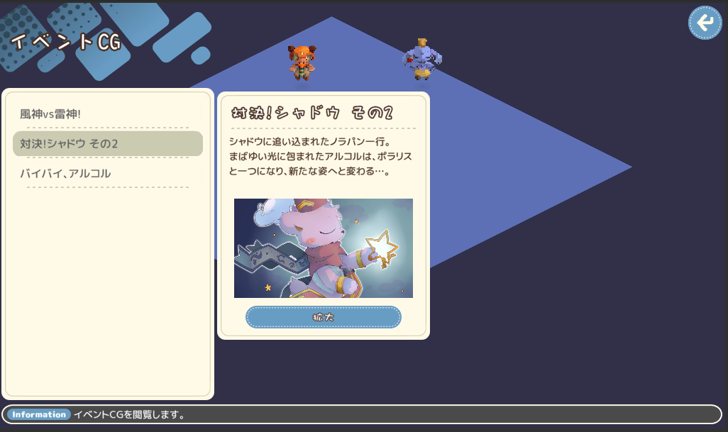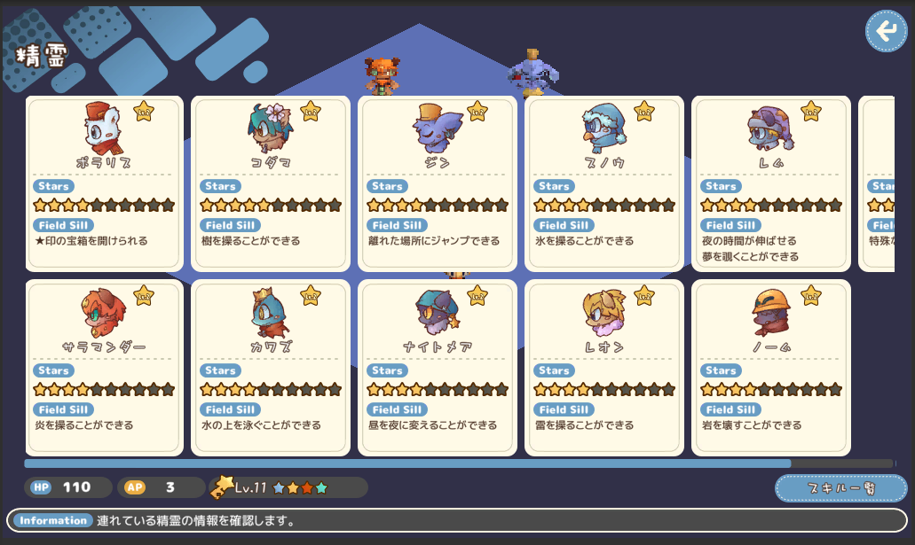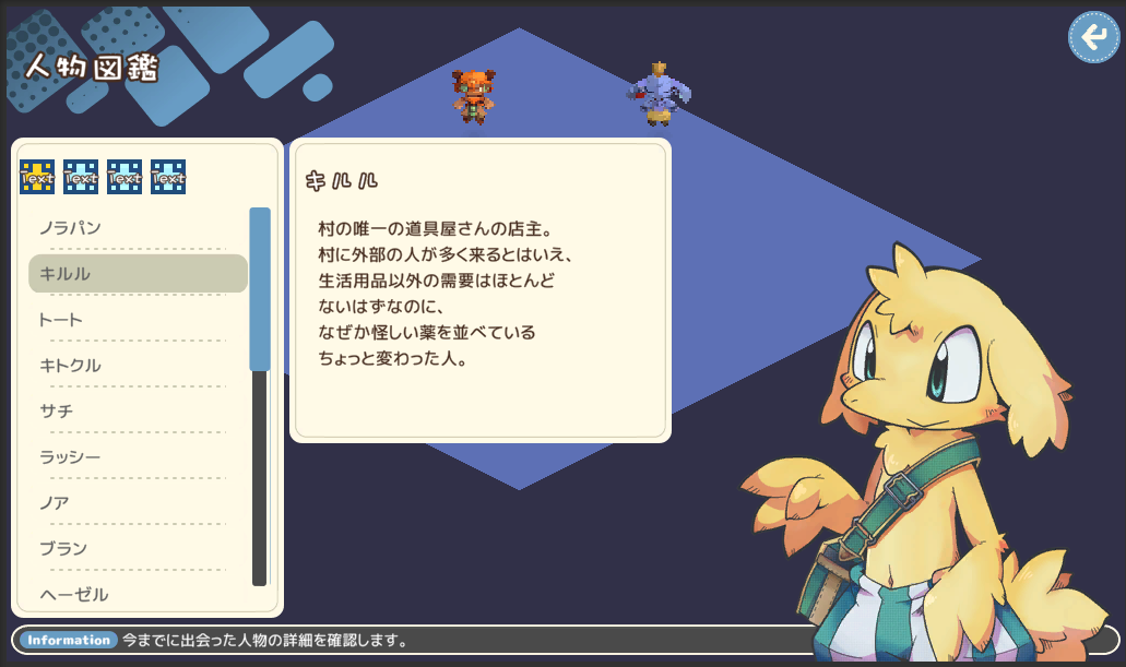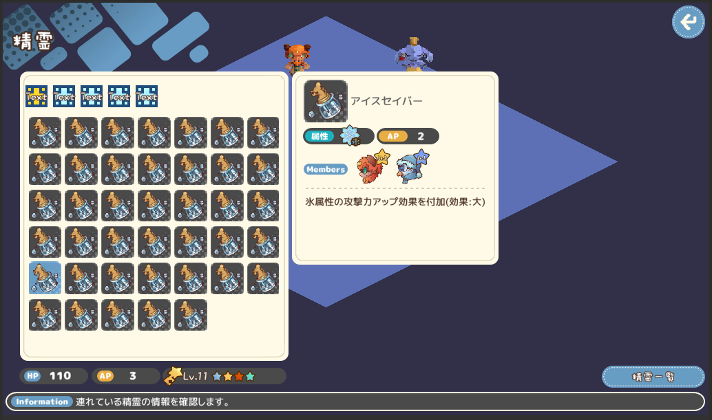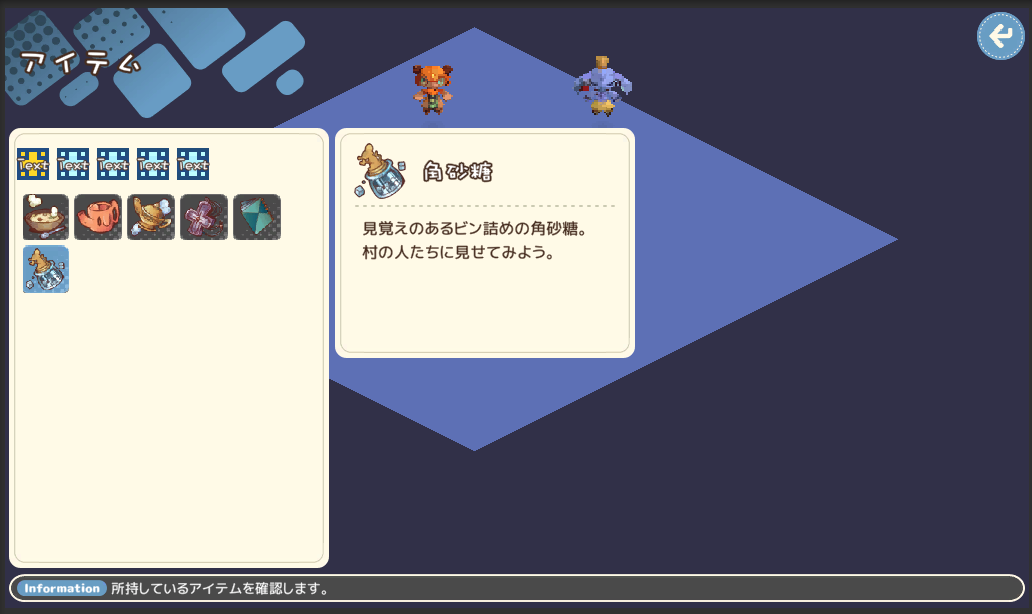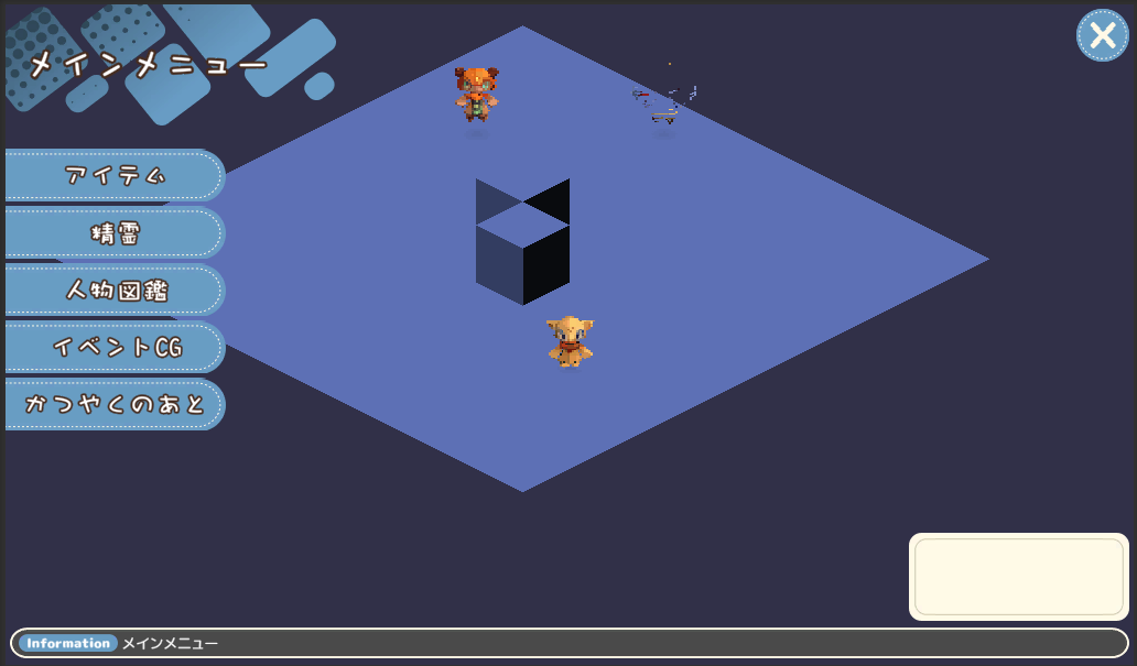 [GameDev]UI整備 開発 2020.06.22 することなくなったときは、いつややると思って置いておいたものをやればいいのだ。 ちょっとファンシーが過ぎる感あるけど、どうだろうか…。 (でもとりあえず画面がキレイになると進んだ気がする) メインメニュー アイテム カテゴリアイコンはまだ。 精霊 スキル イベントCG 人物図鑑